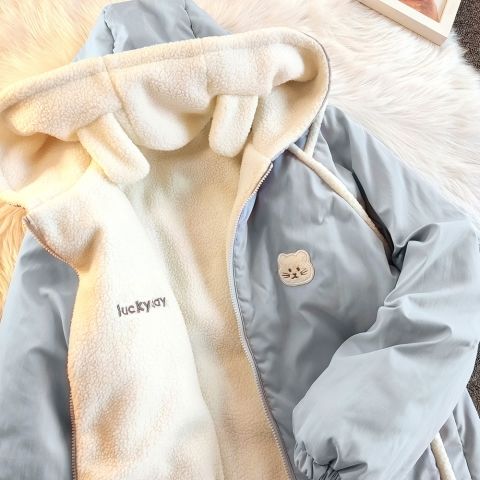 两面穿棉衣棉服羊羔毛外套女冬新款设计感日系软妹甜棒球服热门设计联盟服务商