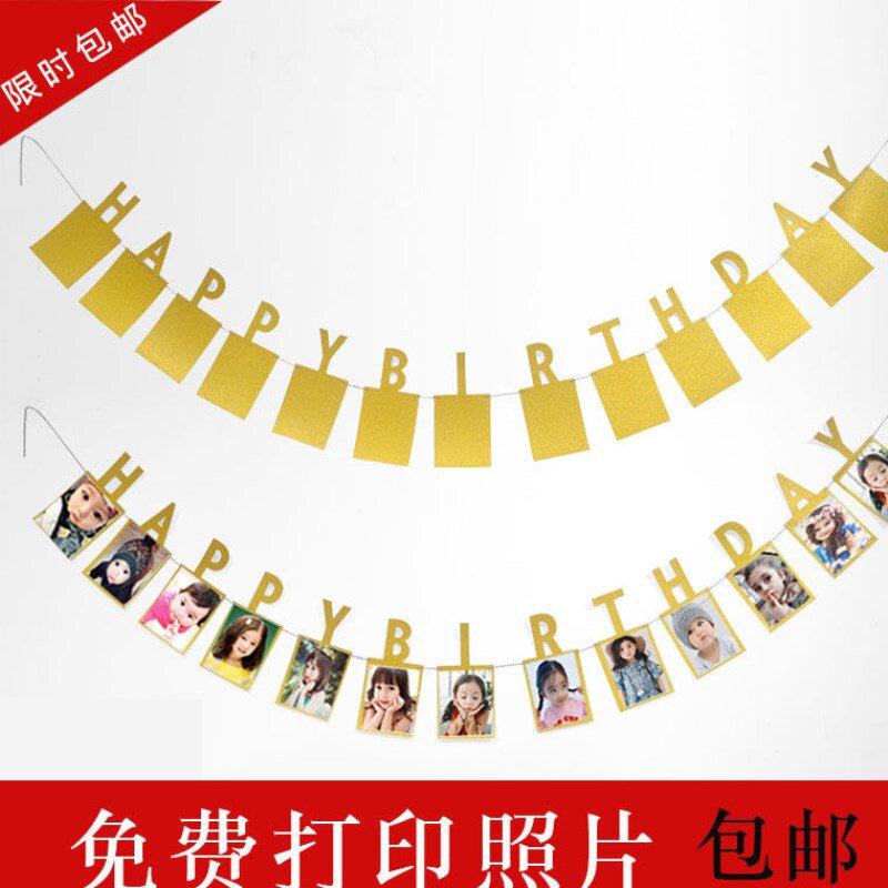 创意个性照片夹宝宝周岁照片相框拉旗横幅儿童生日拉花生日派对用热门设计联盟服务商