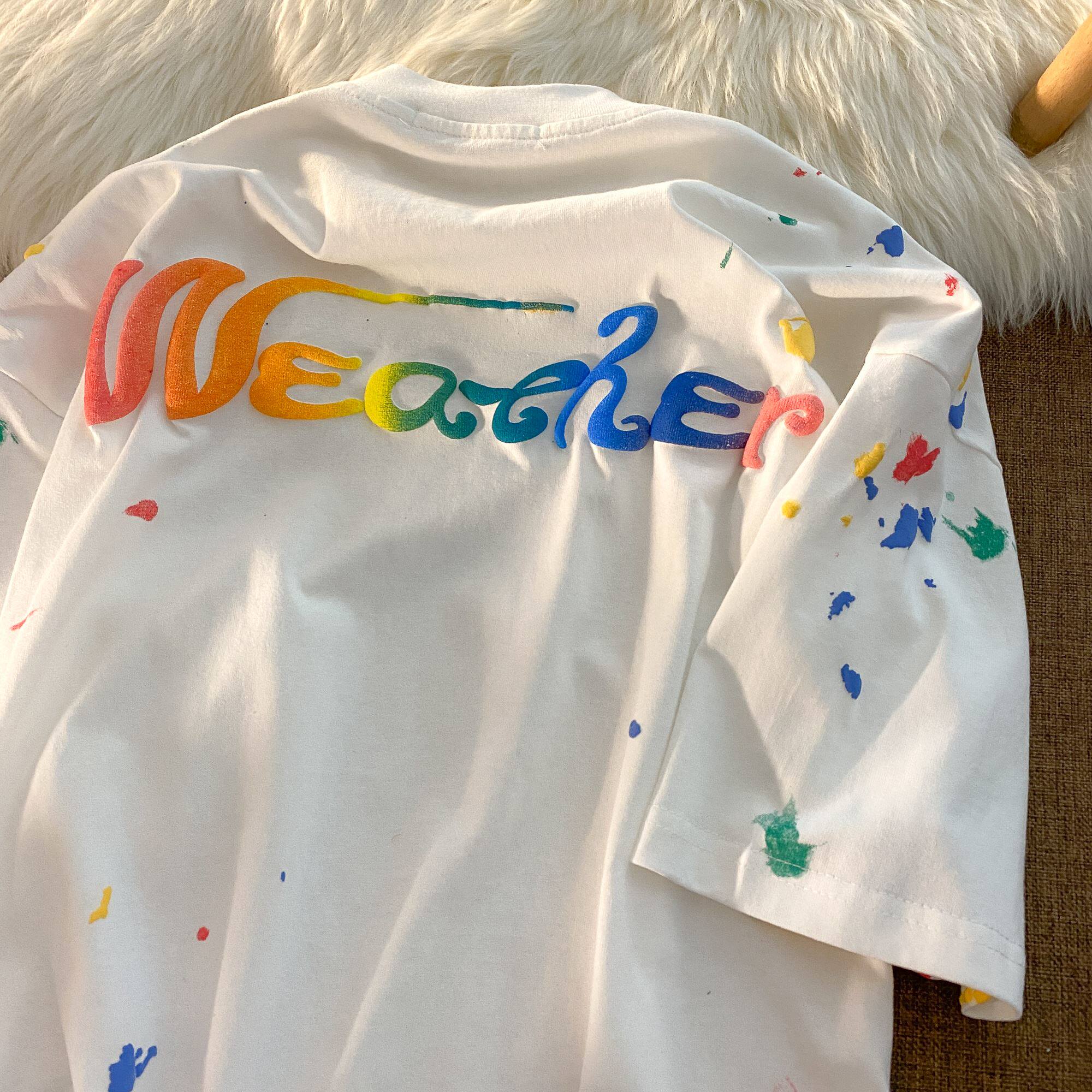 Neresum泼墨设计感印花发泡英文字母短袖T恤女2021新款宽松情侣装热门设计联盟服务商