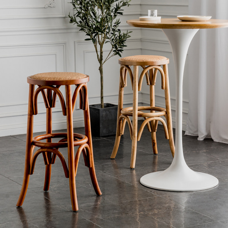 实木藤编吧椅设计师创意酒吧高脚椅奶茶店美式形古轻复圆奢高脚凳热门设计联盟服务商