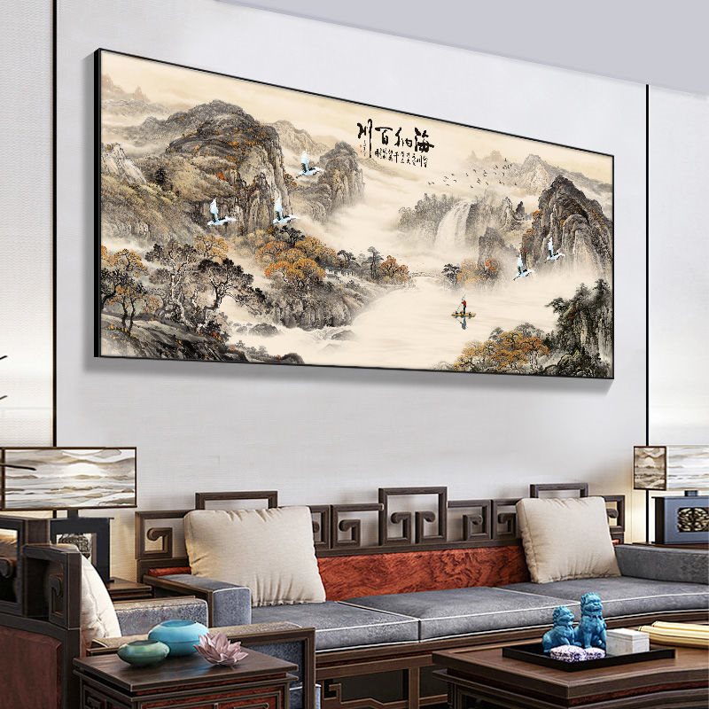 新中式客厅装饰画沙发背景墙画办公室挂画横幅中国风山水国画招财热门设计联盟服务商