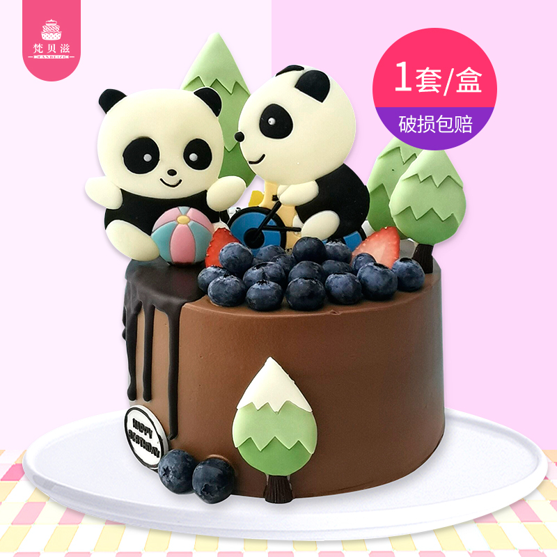 生日蛋糕装饰摆件巧克力熊猫儿童创意卡通松树配件可食用网红插件热门设计联盟服务商