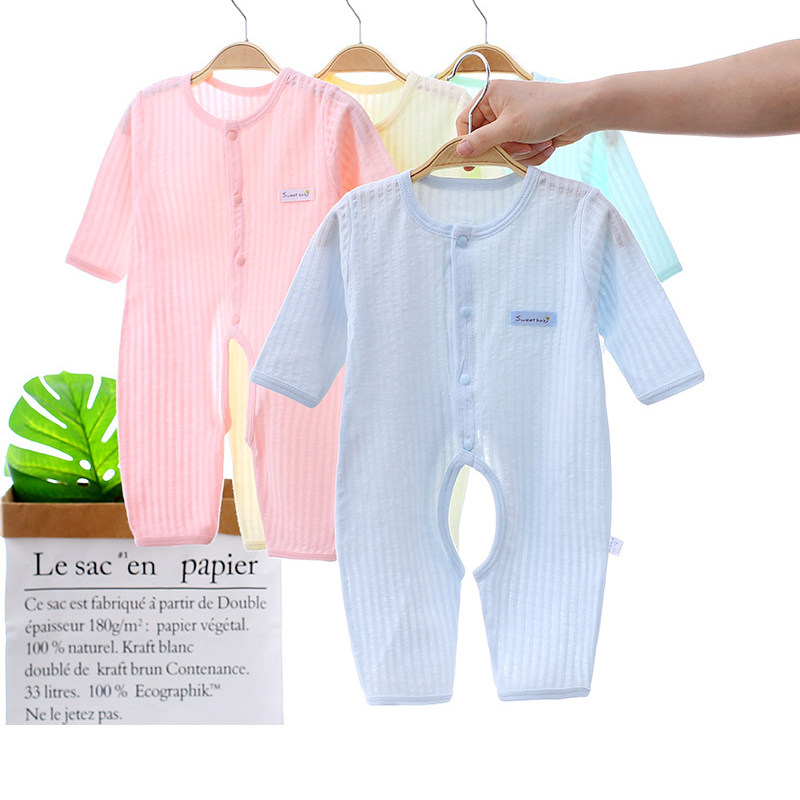 婴儿连体衣夏季薄款纯棉长袖哈衣开档宝宝爬服超薄空调服睡衣透气热门设计联盟服务商